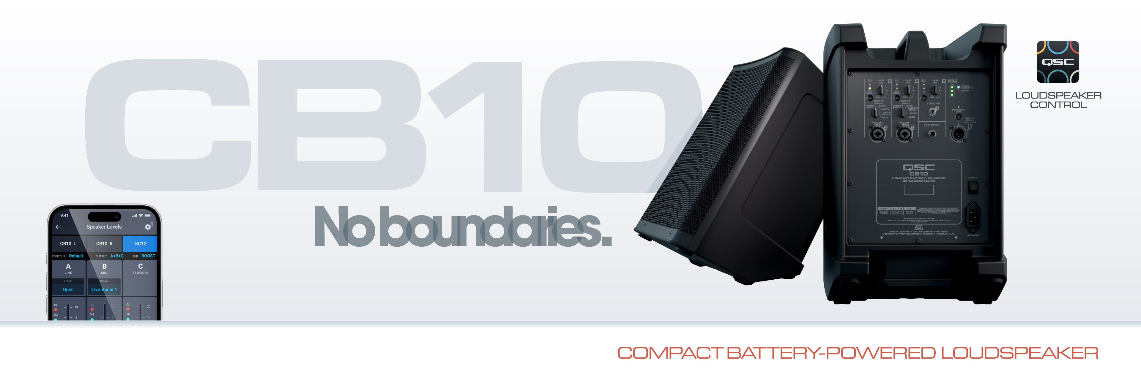 QSC announced the debut of three new innovations: The CB10 Compact Battery-Powered Loudspeaker System, the LS218 Double 18-inch active subwoofer, and the QSC Loudspeaker Control app.