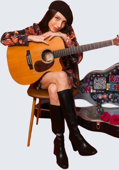 KATIE FERRARA Her music serves the dual purpose of fearlessly speaking her truth and giving her listeners the courage to speak their own. Katie is a Los Angeles native and award-winning singer/songwriter. She’s carved a truly unique path for herself as a professional busker taking her literally around the world from the streets of Burbank to Vienna to Seoul and everywhere in between. Katie’s music has been featured in shows like Good Witch and Dolce Villa. She has two albums out and is sponsored by QSC and Yamaha. Her third album Queen of the Flowers is due out in 2026.