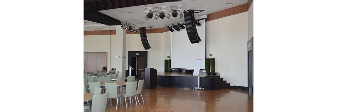 In preparation for Euro 2012, which saw a sizeable portion of the UEFA delegation staying at the Victoria, the hotel was thoroughly refurbished and all of its audio systems were renewed throughout. Odessa-based installer Real Music, who are also the QSC distributor for Ukraine, were responsible for installing all of the PA/VA speakers and systems. A QSC ILA line array comprising 16 WL2082-i elements (eight left, eight right) and four WL118-sw subwoofers was used in the main conference hall at the Victoria, where all of the pre- and post-match press conferences were held during the tournament. The array was driven by a combination of four PLX3102 amps, plus a PLX1104 and an RMX 5050, and managed by an SC28 system controller.