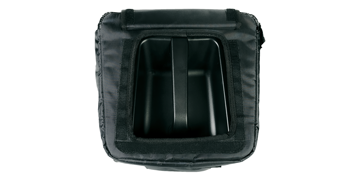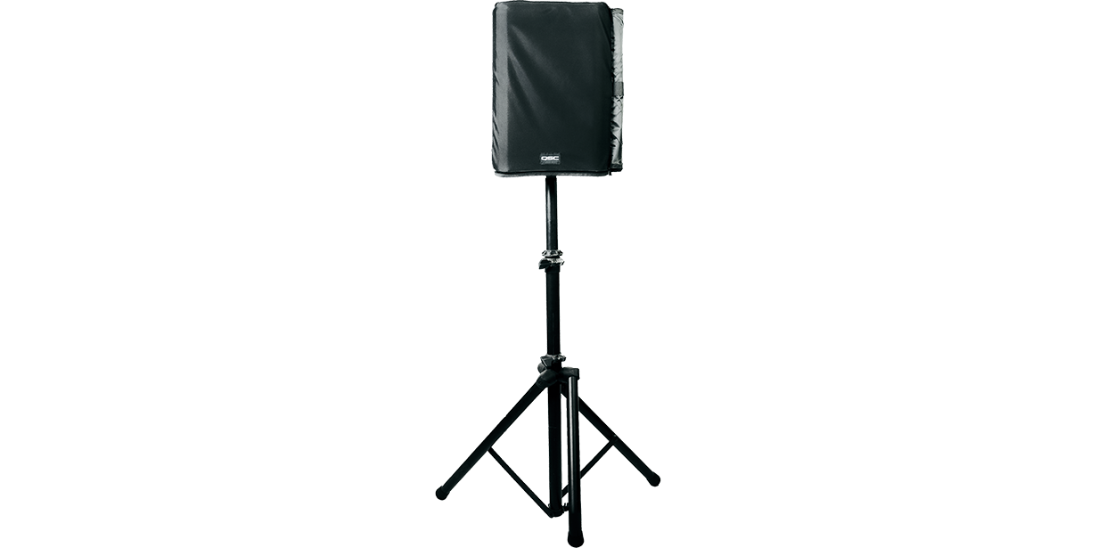 Nylon fabric and hydrophobic mesh cover for transport and temporary outdoor use of CB10 active loudspeaker in adverse weather. Removable amplifier panel allows access to connectors and controls. Vented panel maintains airflow for proper heat management. Not intended for permanent outdoor installations.